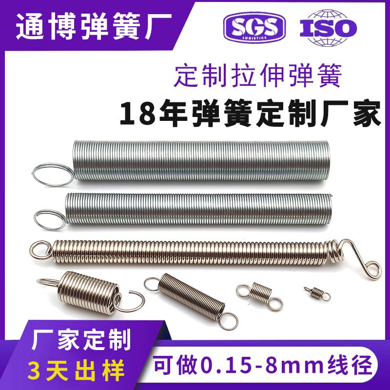 广东弹簧 304不锈钢圆钩长拉簧树牌固定拉伸弹簧带钩拉力簧加工