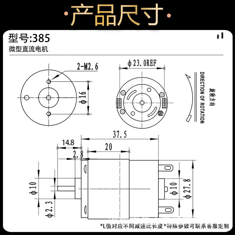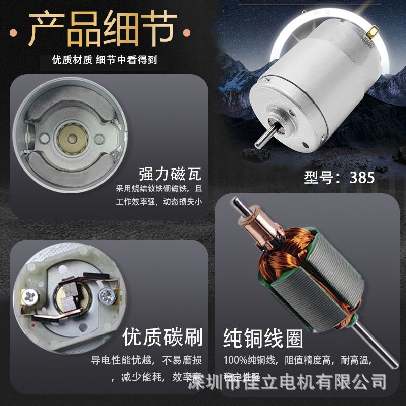 385强磁碳刷12V24V微型直流高速电动机大功率小马达吹