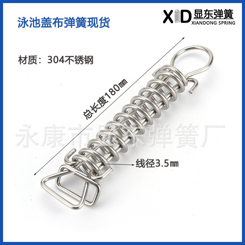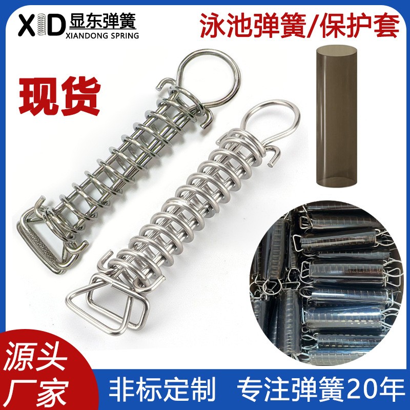现货跨境爆款带螺纹304不锈钢游泳池弹簧 PVC泳池盖布弹簧保护套