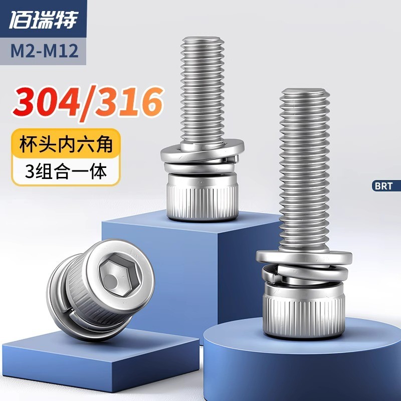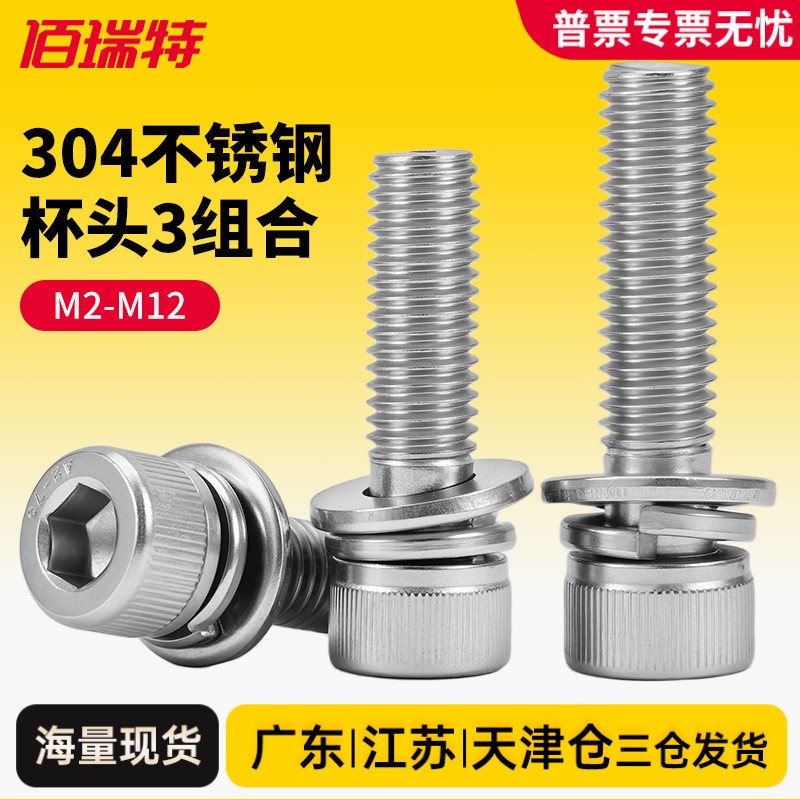304不锈钢杯头内六角螺丝套装316圆柱头螺栓垫片三组合M3M4M5M6M8