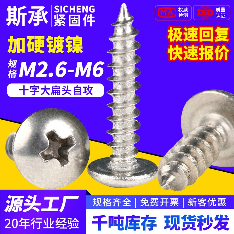 TA镀镍加硬十字槽大扁头自攻螺丝钉M3|M3.5|M4伞头蘑菇 头自攻钉