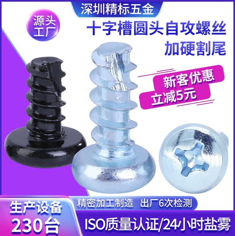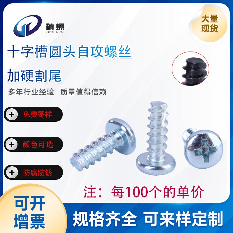 现货BT十字槽镀锌自攻螺丝带割尾加硬圆头螺丝钉机箱配件螺丝钉