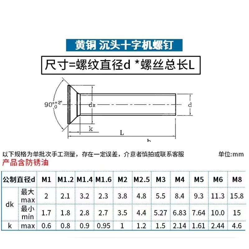 定制非标黄铜沉头十字螺钉 GB819黄铜螺丝 十字平头铜螺钉 10件