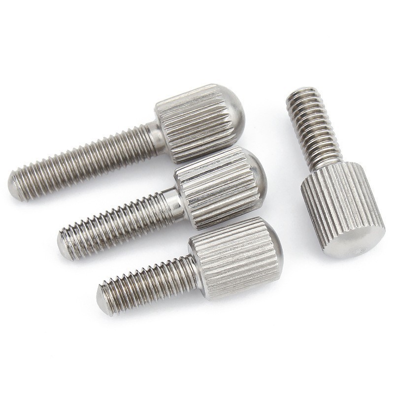 304不锈钢滚花手拧螺丝竖纹调节螺钉弹弓螺丝户外快压手拧螺丝