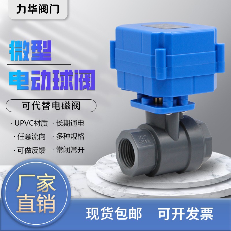 塑料电动球阀DN15UPVC5V12V24V220V排水阀自动控制自动排水开关