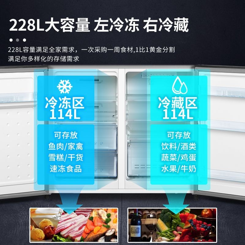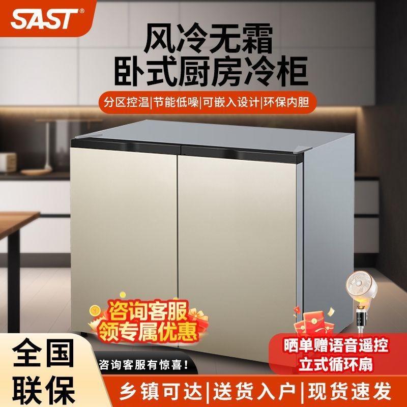 卧式冰箱嵌入式冰柜家用风冷无霜小型柜双门橱柜厨房矮电冰箱