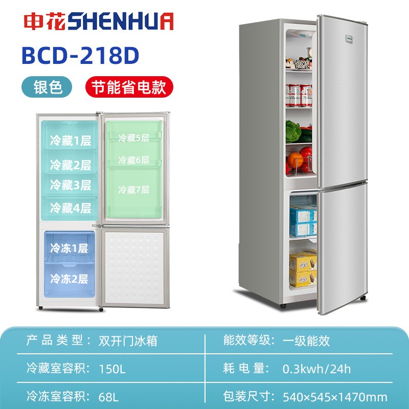 申花218L家用办公室租房双开门抽屉储存一级节能中大型电冰箱