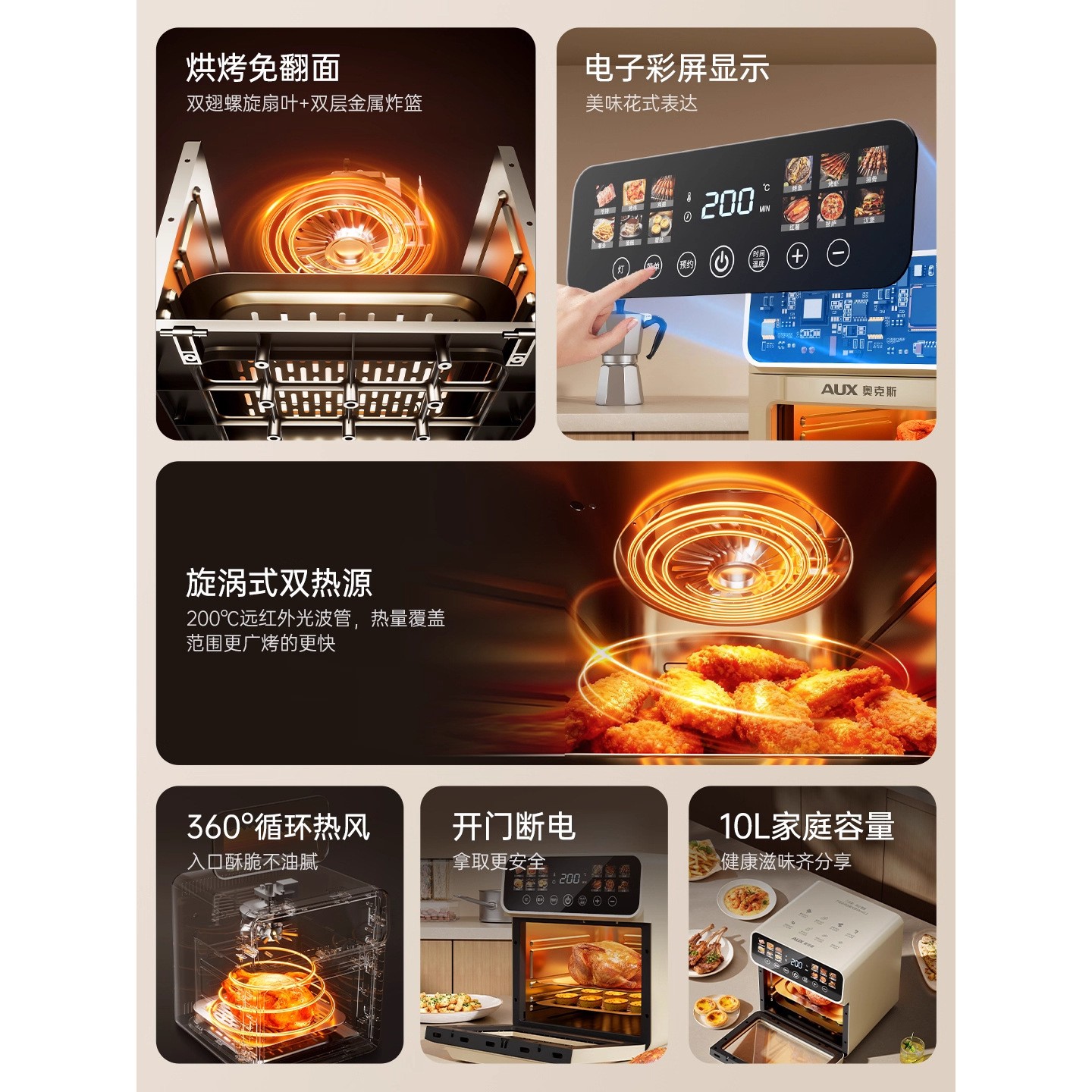 奥克斯电烤箱烘焙专家用多功能可视空气烤箱微波炉一体机2025新款