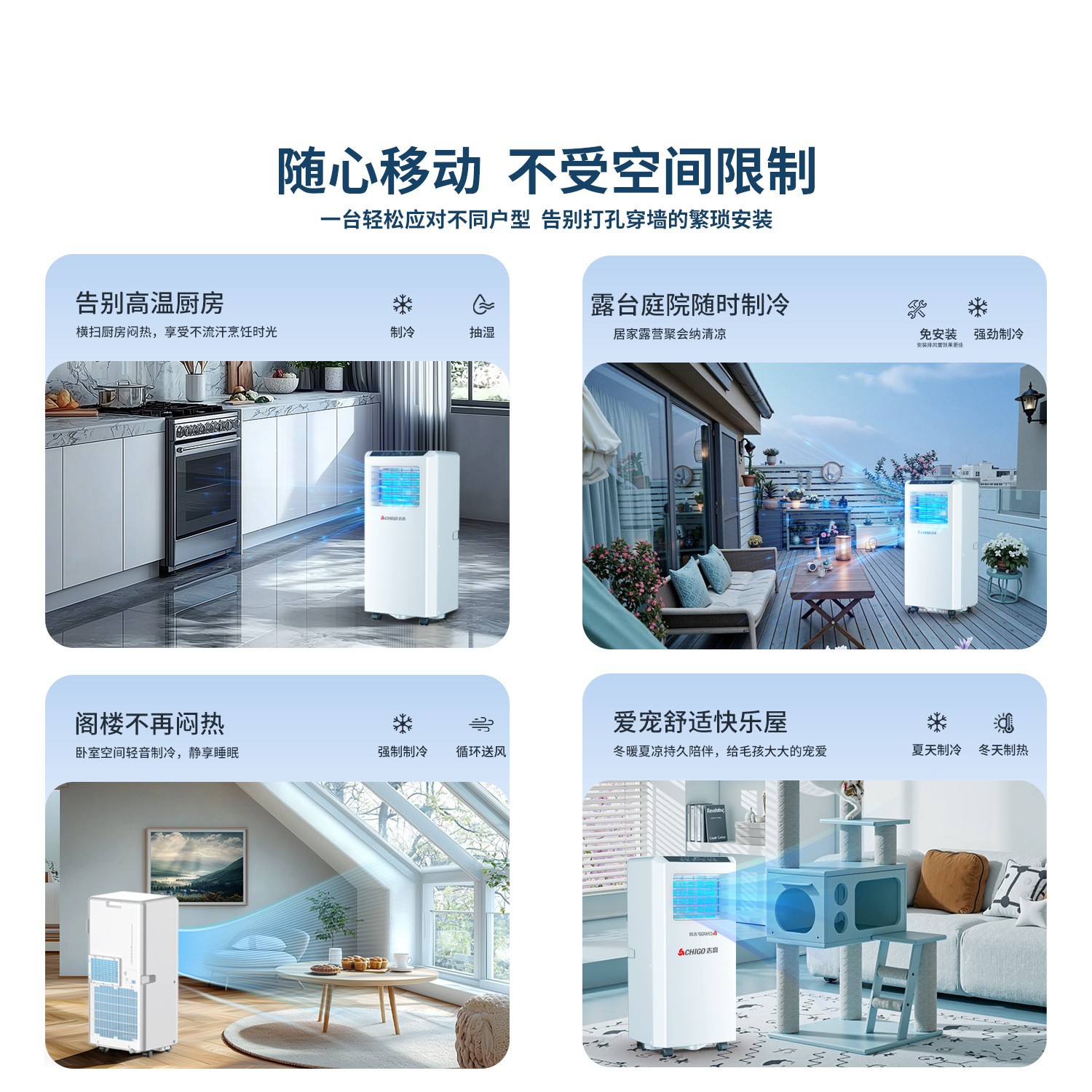 志高可移动空调冷暖一体机无外机单冷免安装式厨房便携制冷小空调