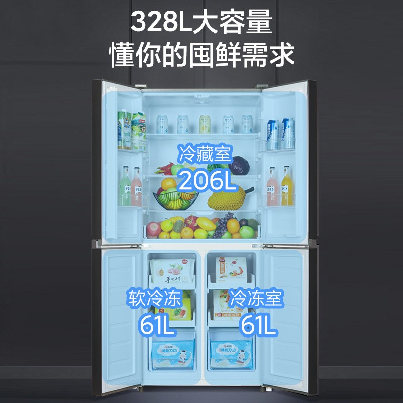 奥克斯大容量对开双开十字四门冰箱风冷无霜一级能效变频超薄节能