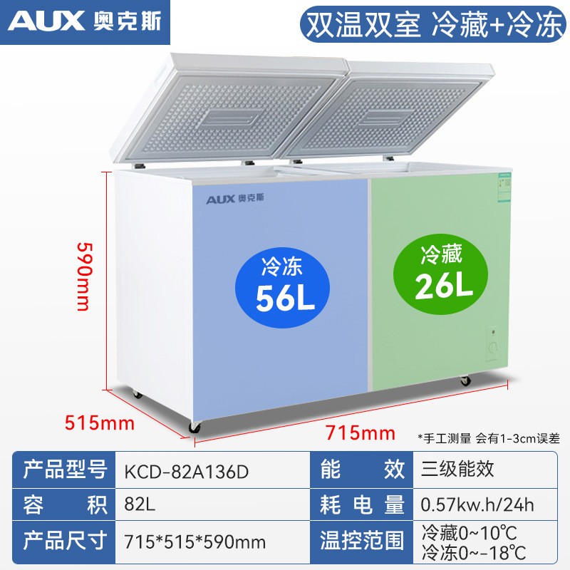奥克斯冷柜82-1855升单温双温冷藏冷冻单门双门家用商用冷柜定制