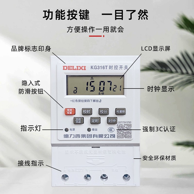 德力西KG316T时控开关220v定时器380V自动控制器路灯时控时间微电