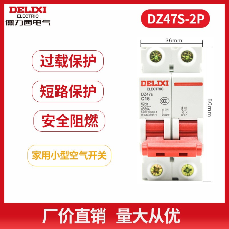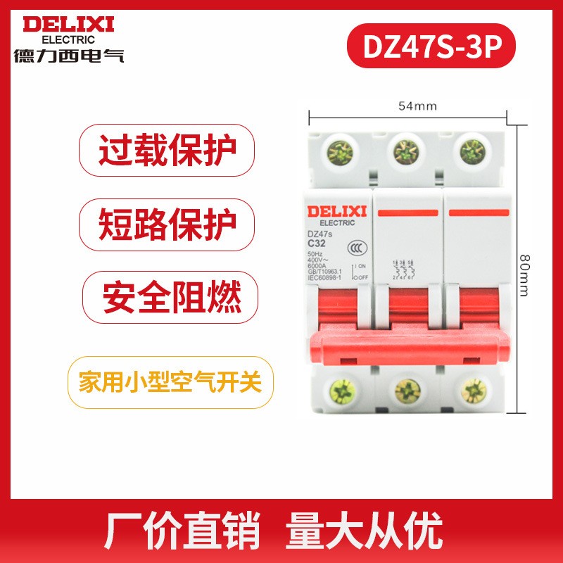 德力西DZ47S 1P空气开关2P家用32a40a三相3P工业断路器4P空开电闸