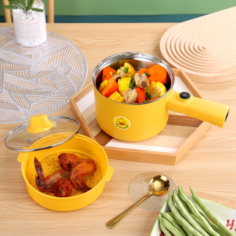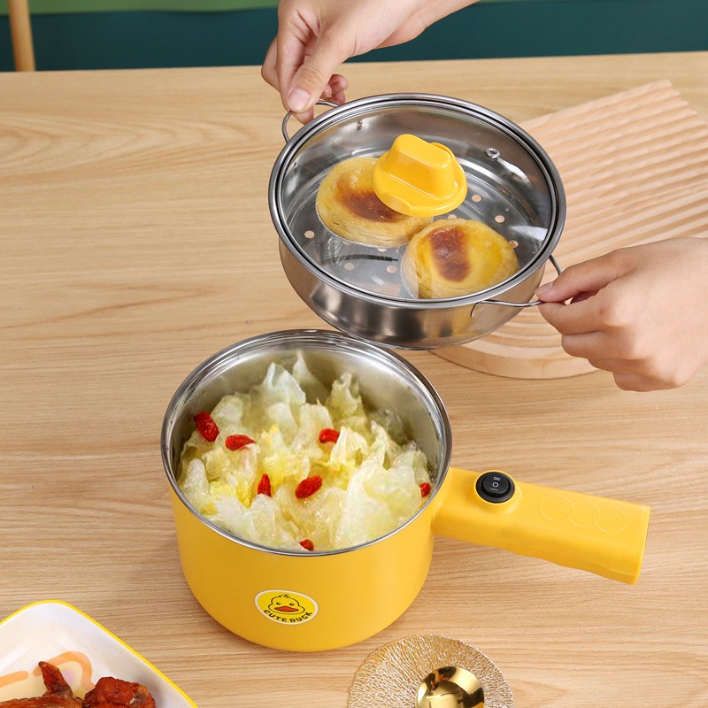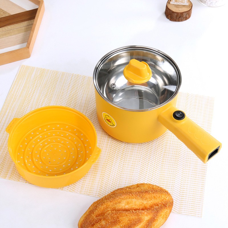 多功能学生锅长柄小黄鸭电煮锅学生宿舍迷你小电锅不锈钢不沾锅
