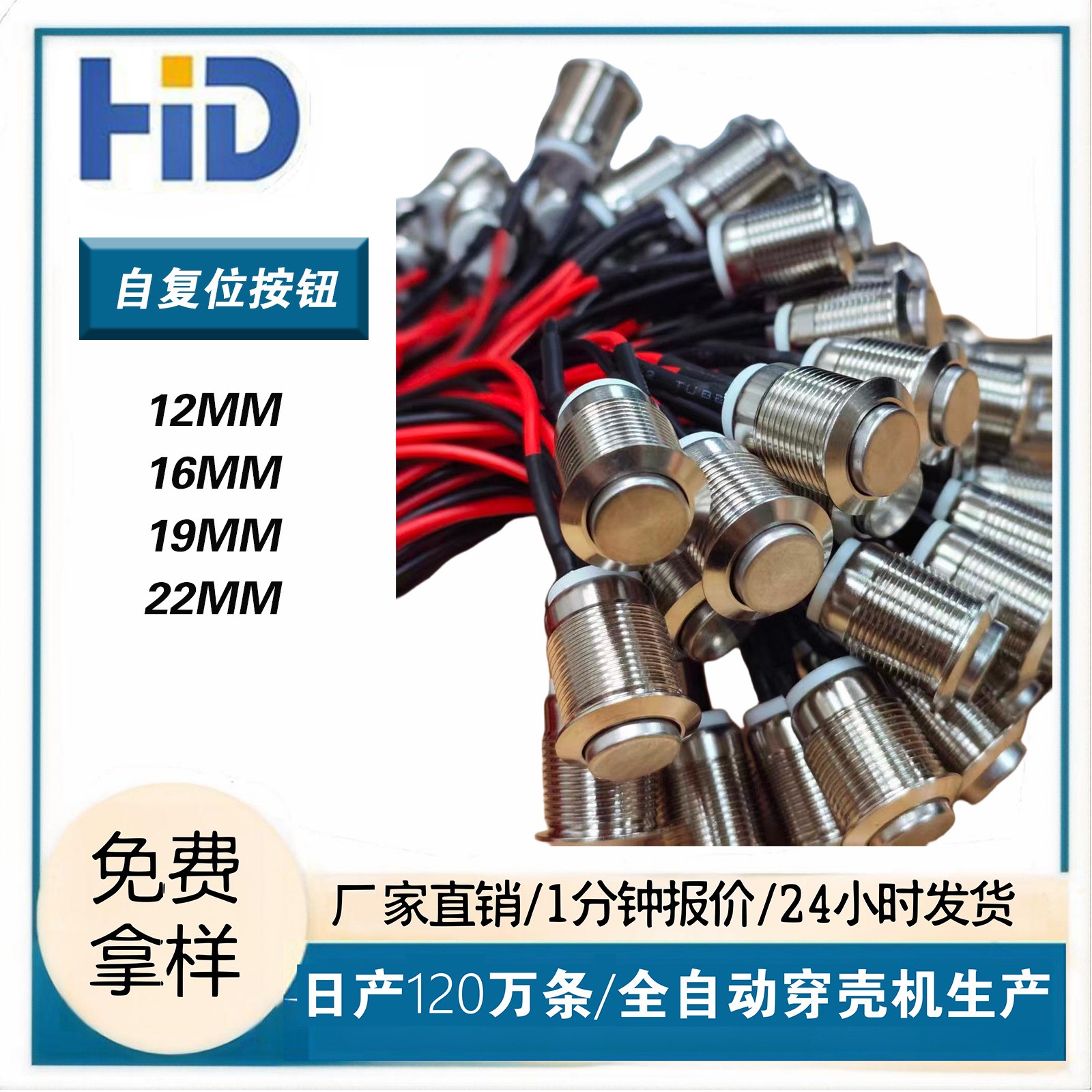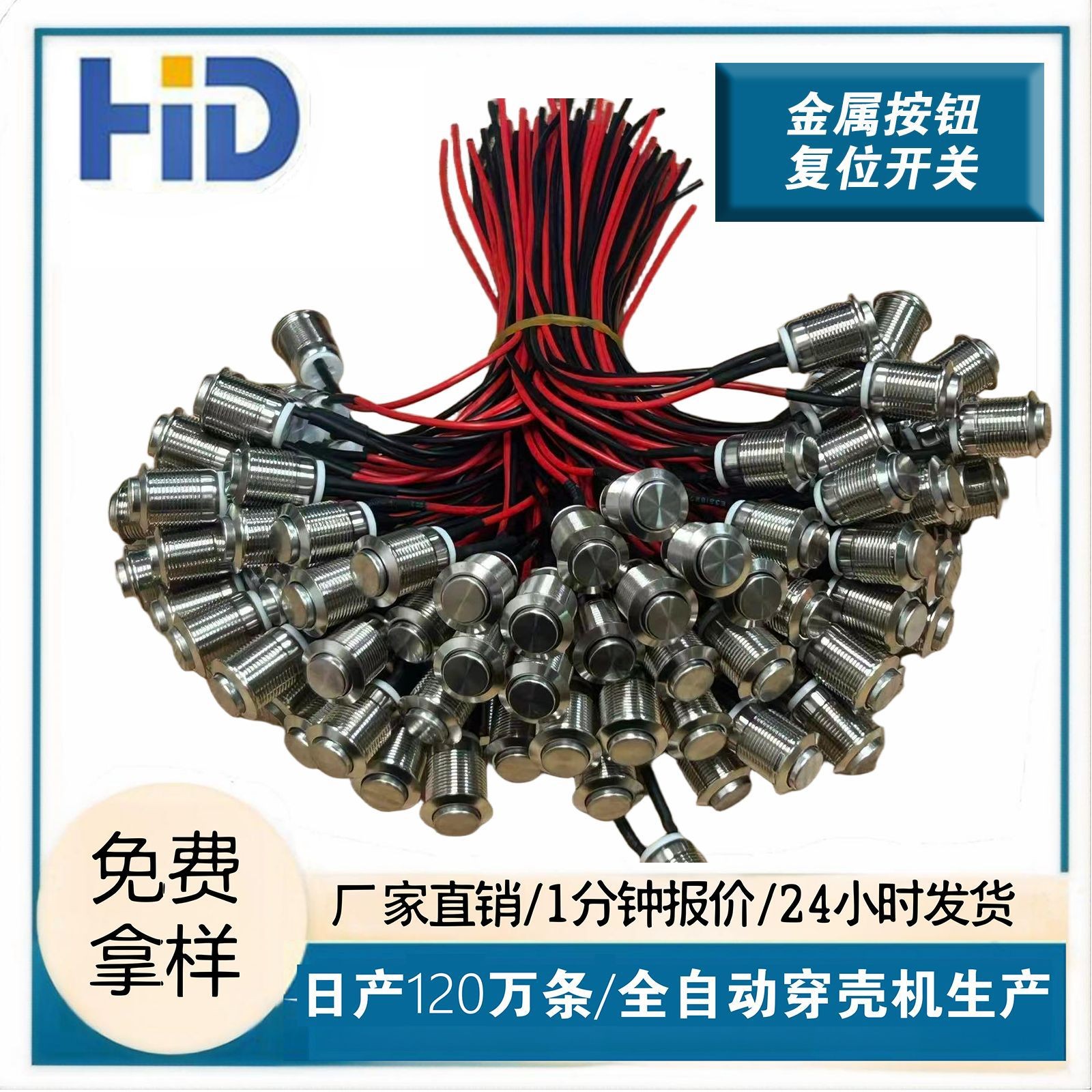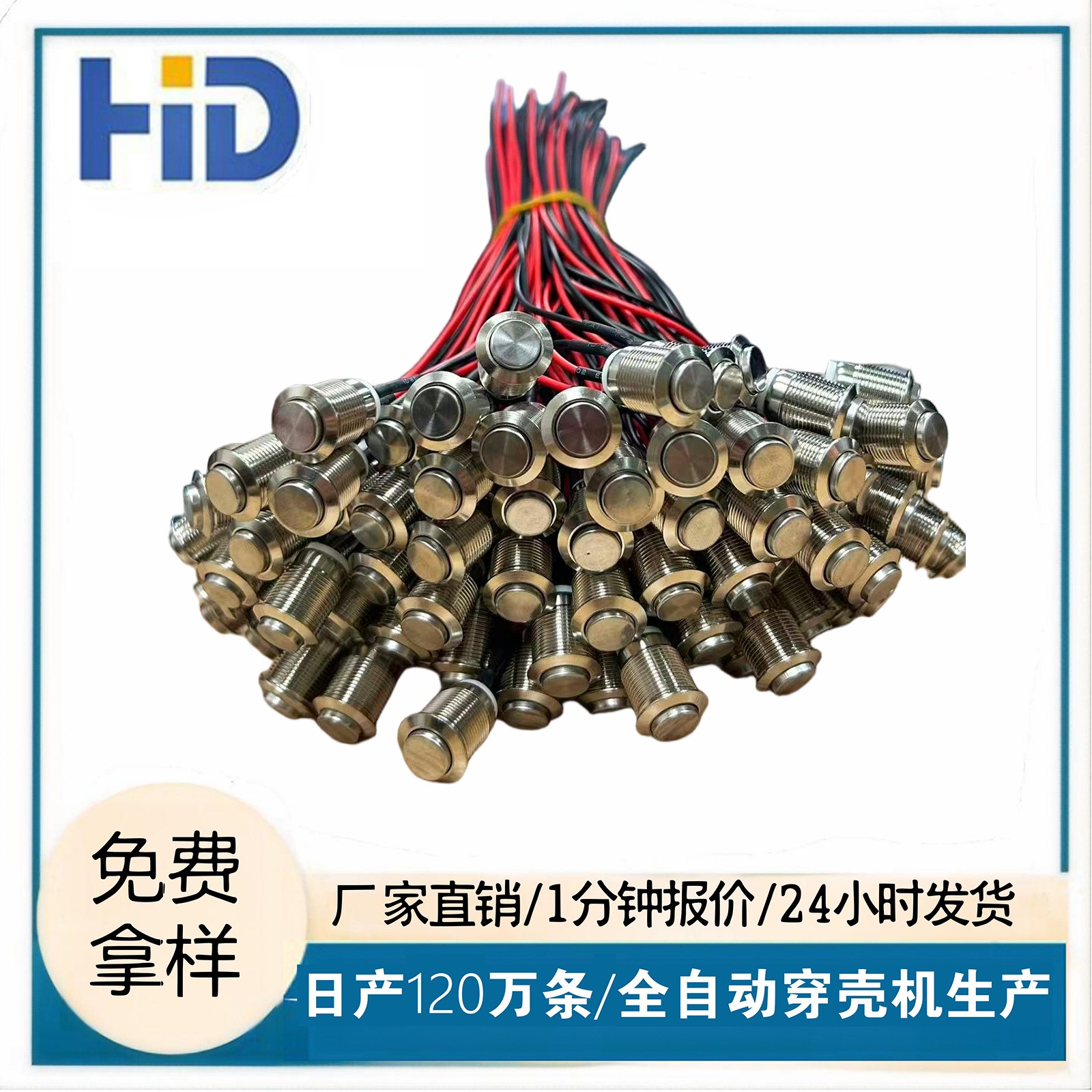 金属按钮自复位开关12MM/16MM/18MM 金属按钮焊线 尾部点锡