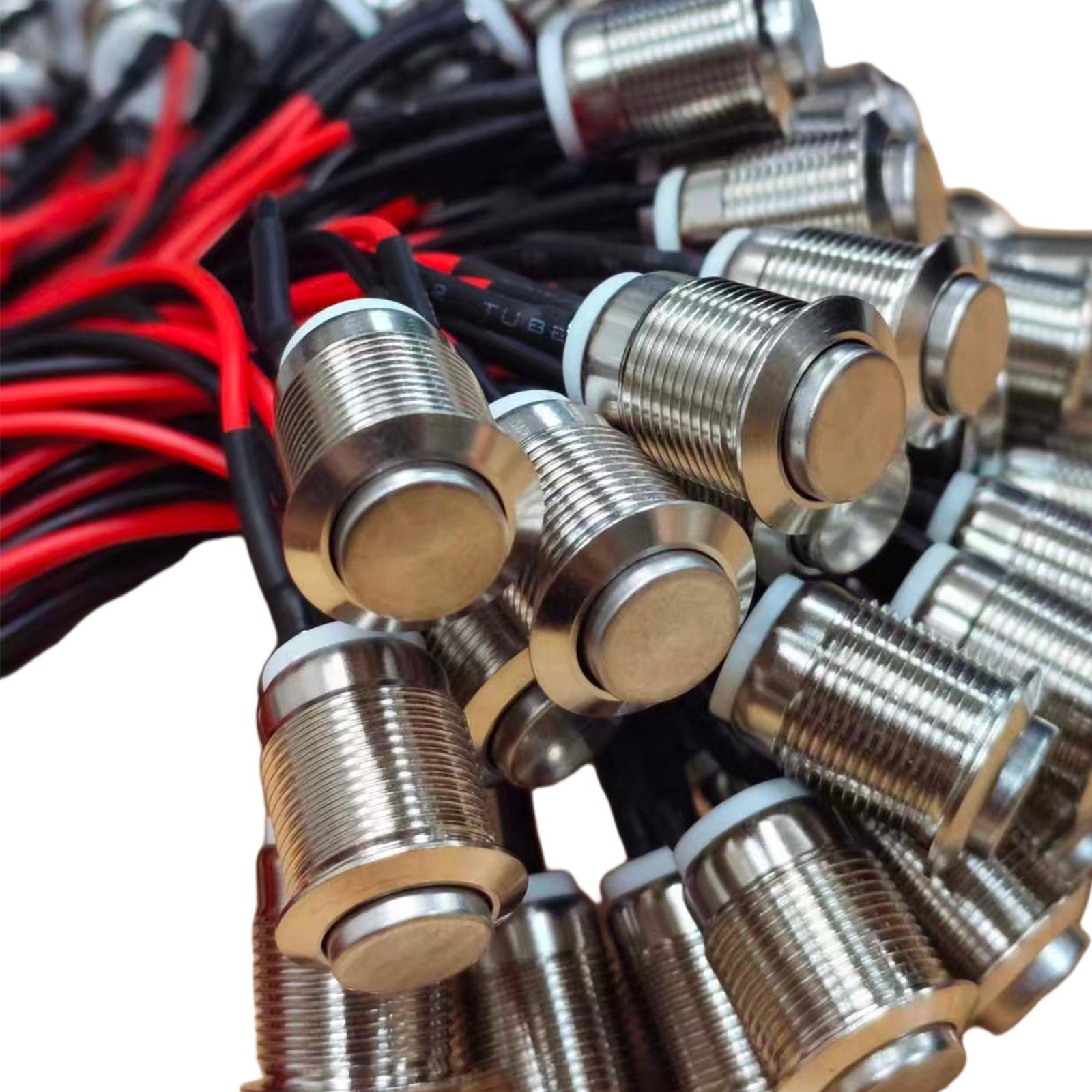 金属按钮自复位开关12MM/16MM/18MM 金属按钮焊线 尾部点锡 或焊接 50条