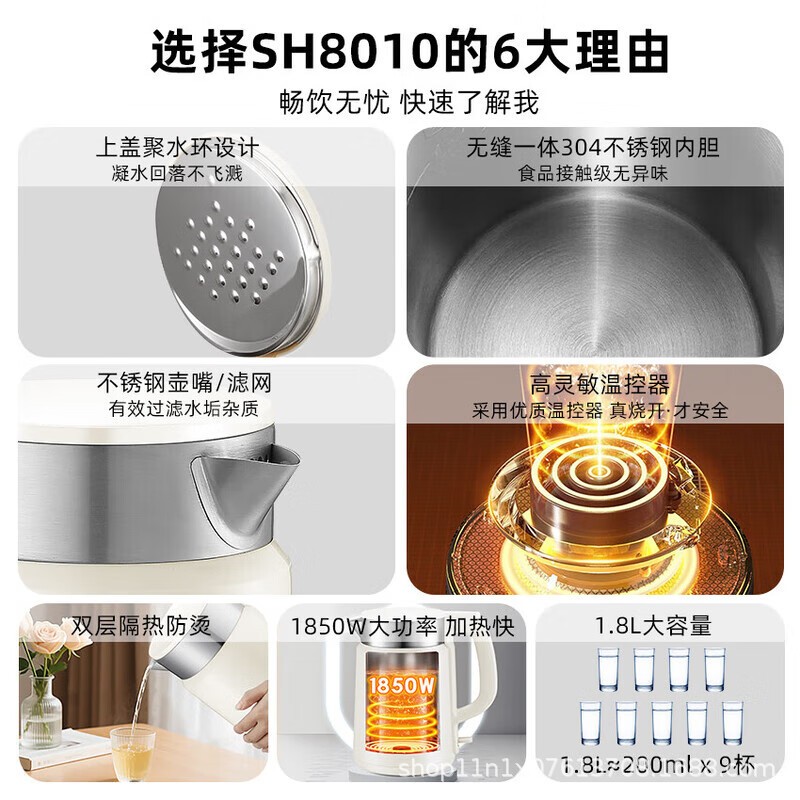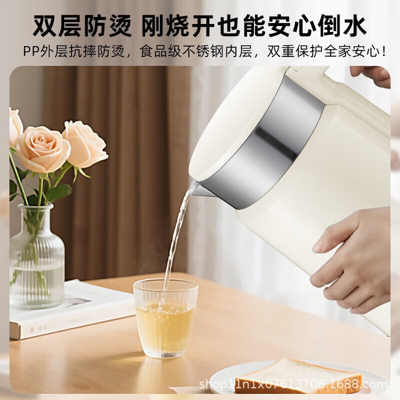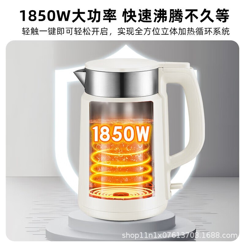 沃尔雅电热水壶烧水壶304不锈钢内胆自动断电双层防烫家用大容量