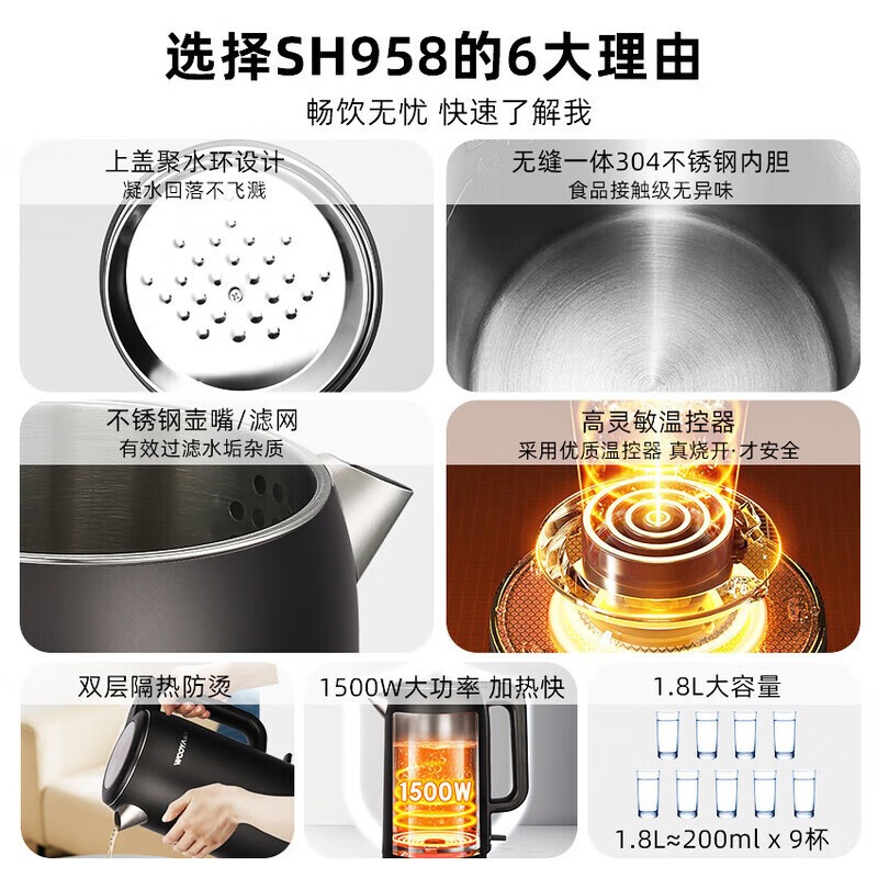 沃尔雅电热水壶家用烧水自动烧水壶小型保温一体便捷宿舍开水恒温