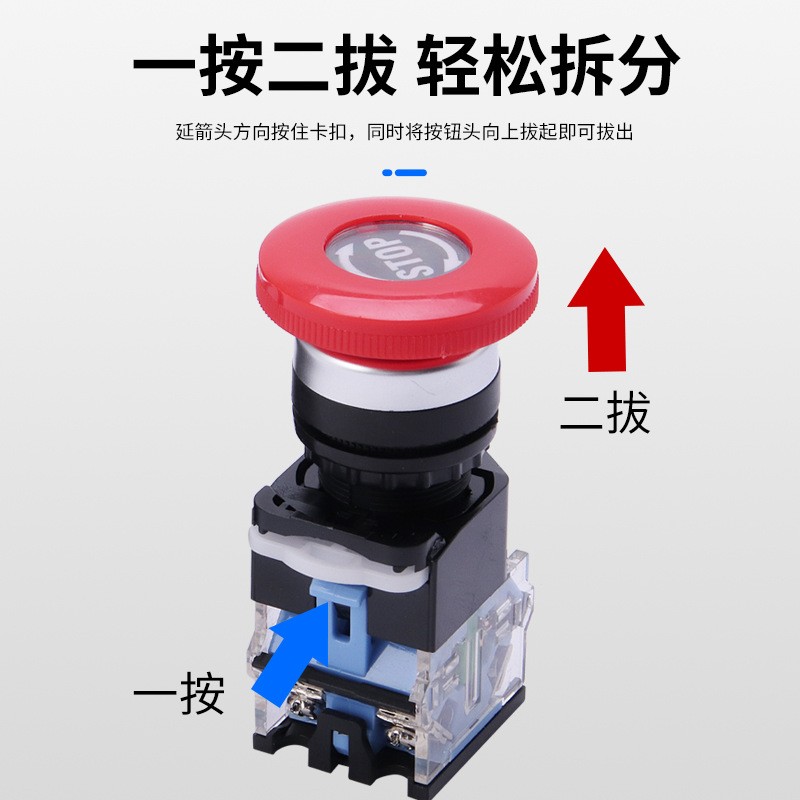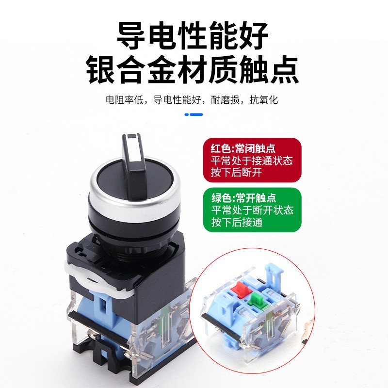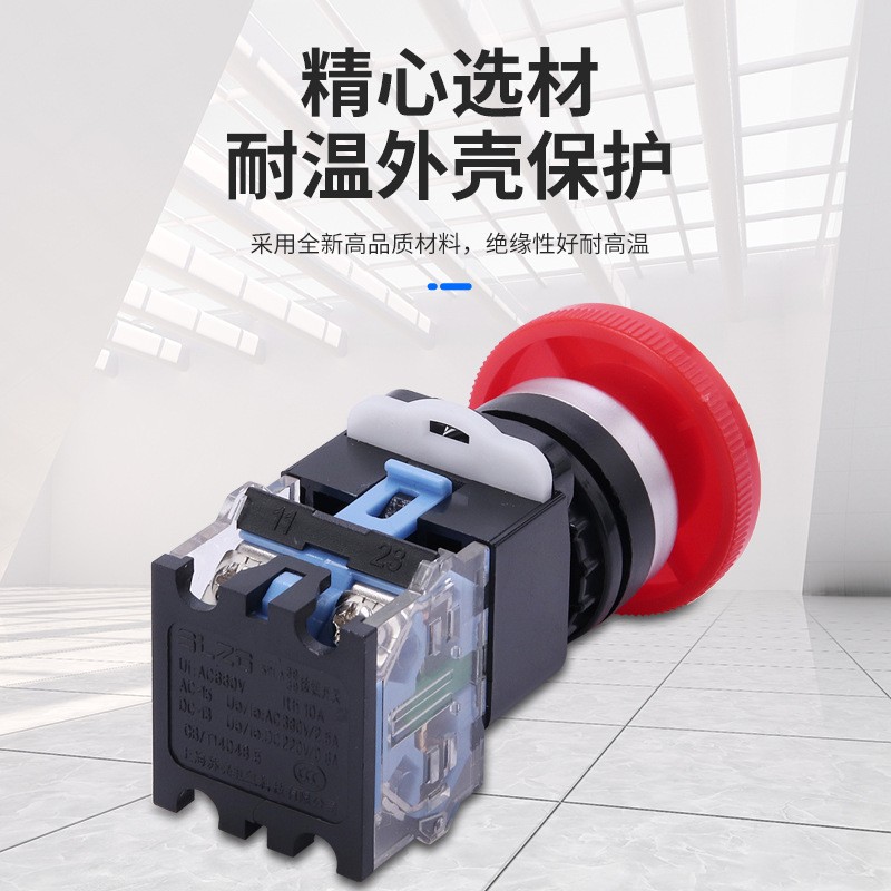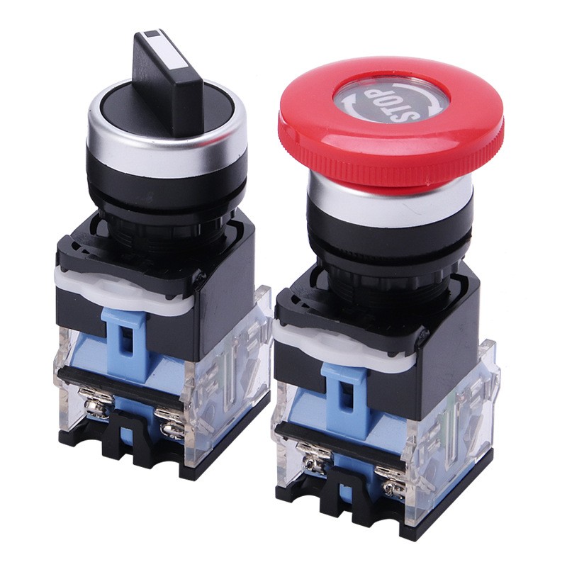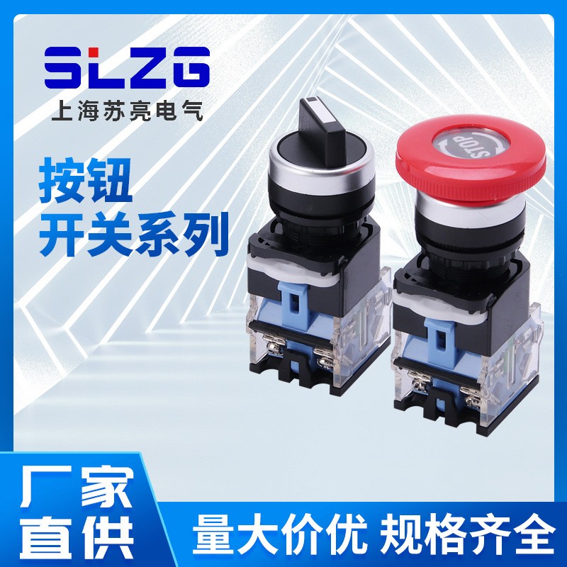 厂家直供LA38系列蓝底按钮开关旋钮平钮自复位蘑菇头圆形开关