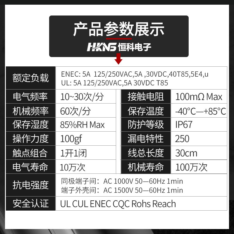 厂家直销微动开关带线1开1闭全防水压杆行程限位开关小型防油防尘 1件