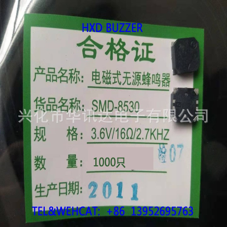 无源贴片电磁式HXD蜂鸣器电压3.6V阻抗16欧频率2.7KHz8.5*8.5*3.0 1000条