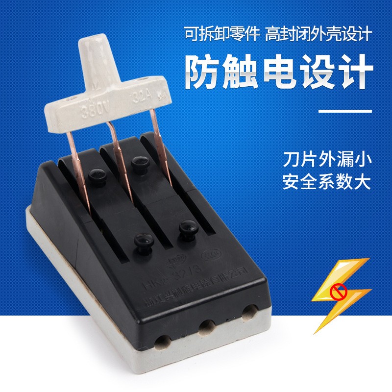 厂家 HK2单相两相32A 2P闸刀开关220V63A黑色老式隔离刀闸单投