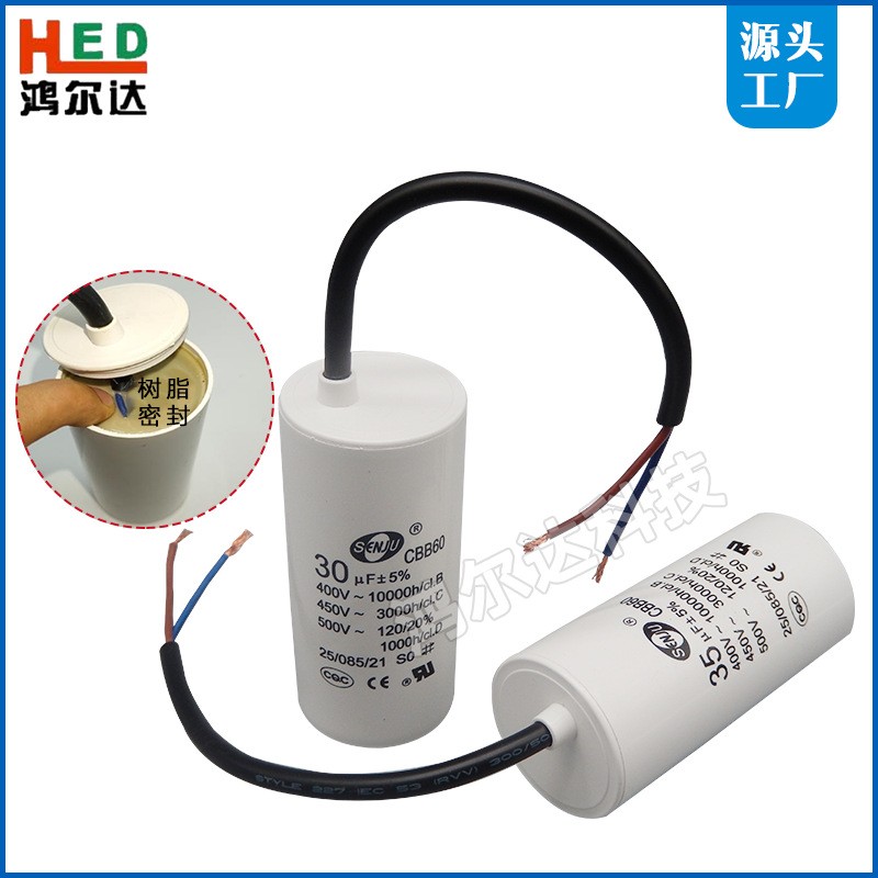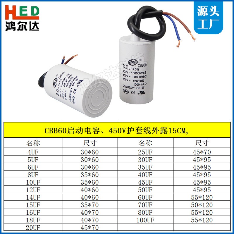 CBB60马达运转电容电容器4/5/6/8/10/12/14/16/20~100UF引线450V