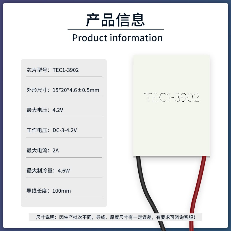 TEC1-3902/15*20mm/4.8V2A半导体制冷片医疗美容仪挂脖风扇制冷片