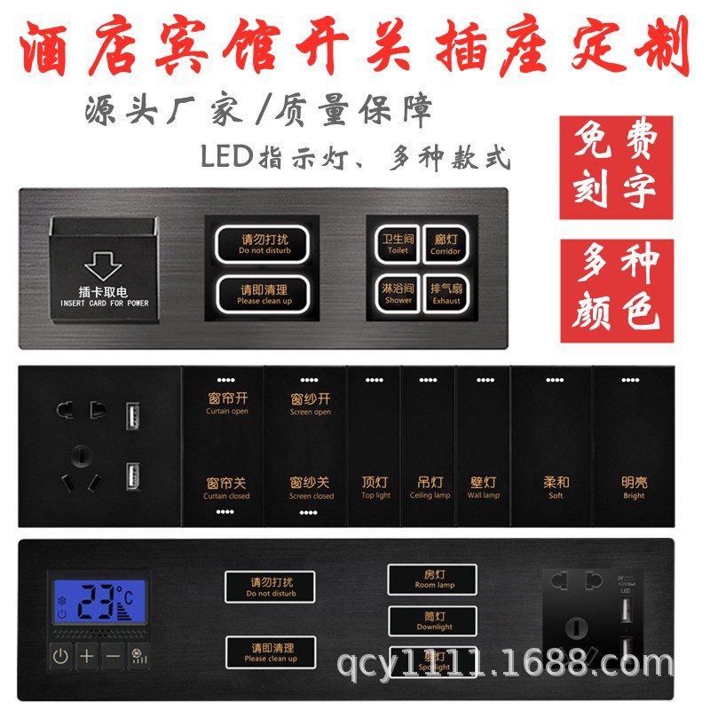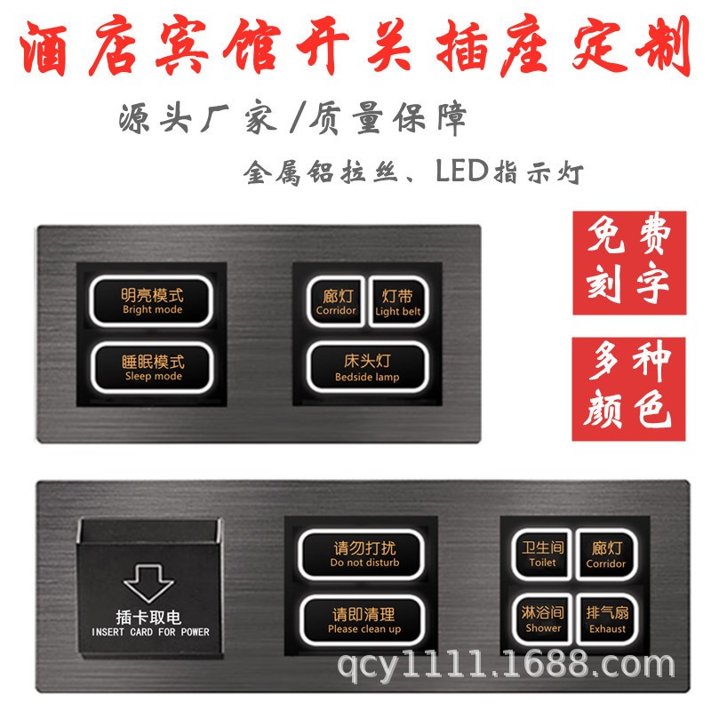 酒店开关宾馆连体组合开关床头柜控制板酒店开关插座面板印字刻字