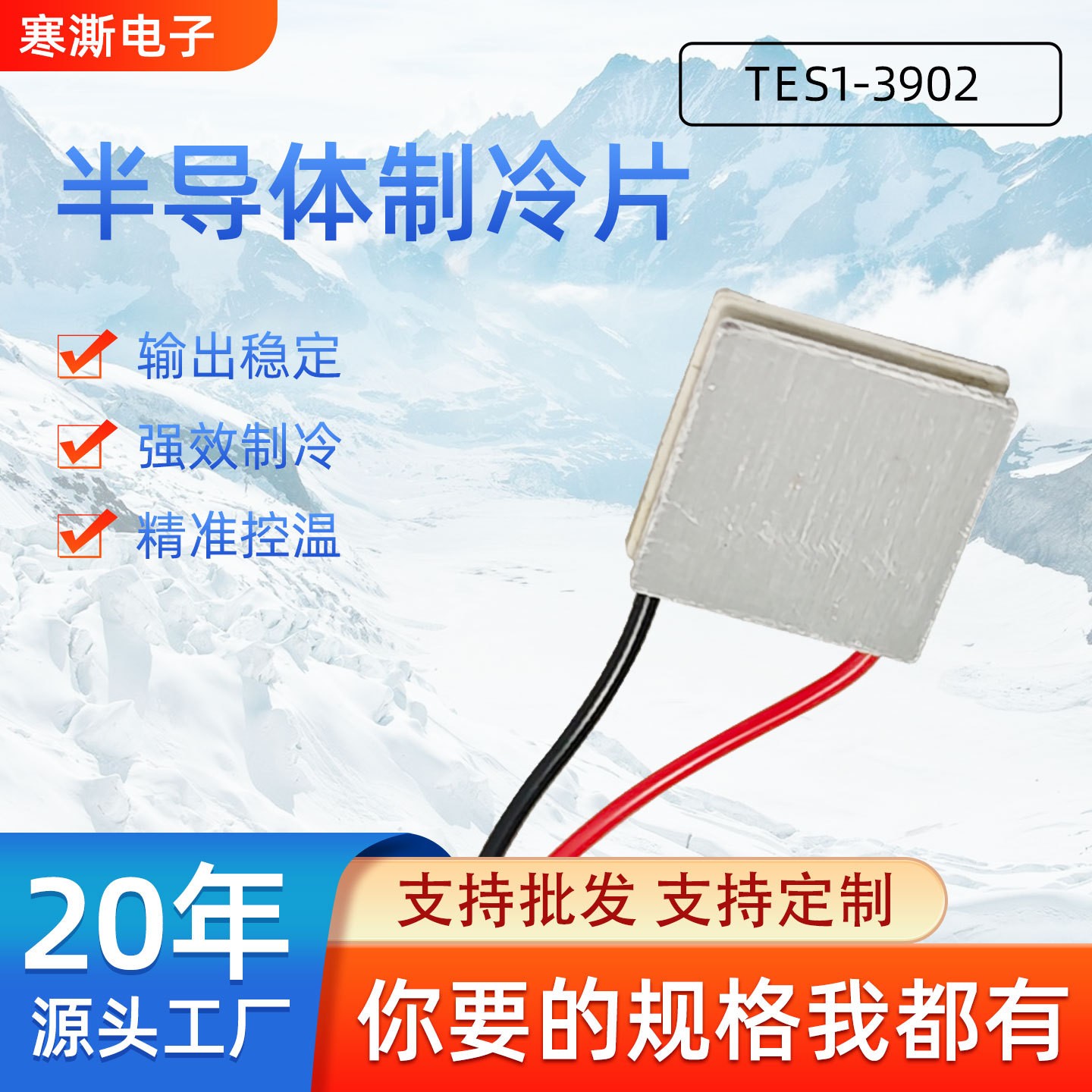 定制TES1-3902铝基板工业级制冷片现货15*15*4.0㎜制冷片