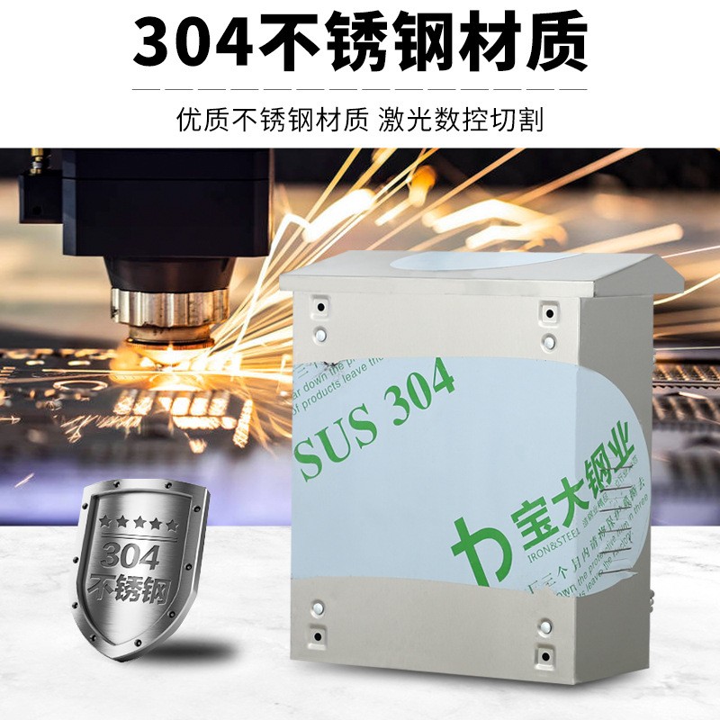 304不锈钢配电箱户外防水防雨防尘双门仪表监控箱落地路灯控制柜