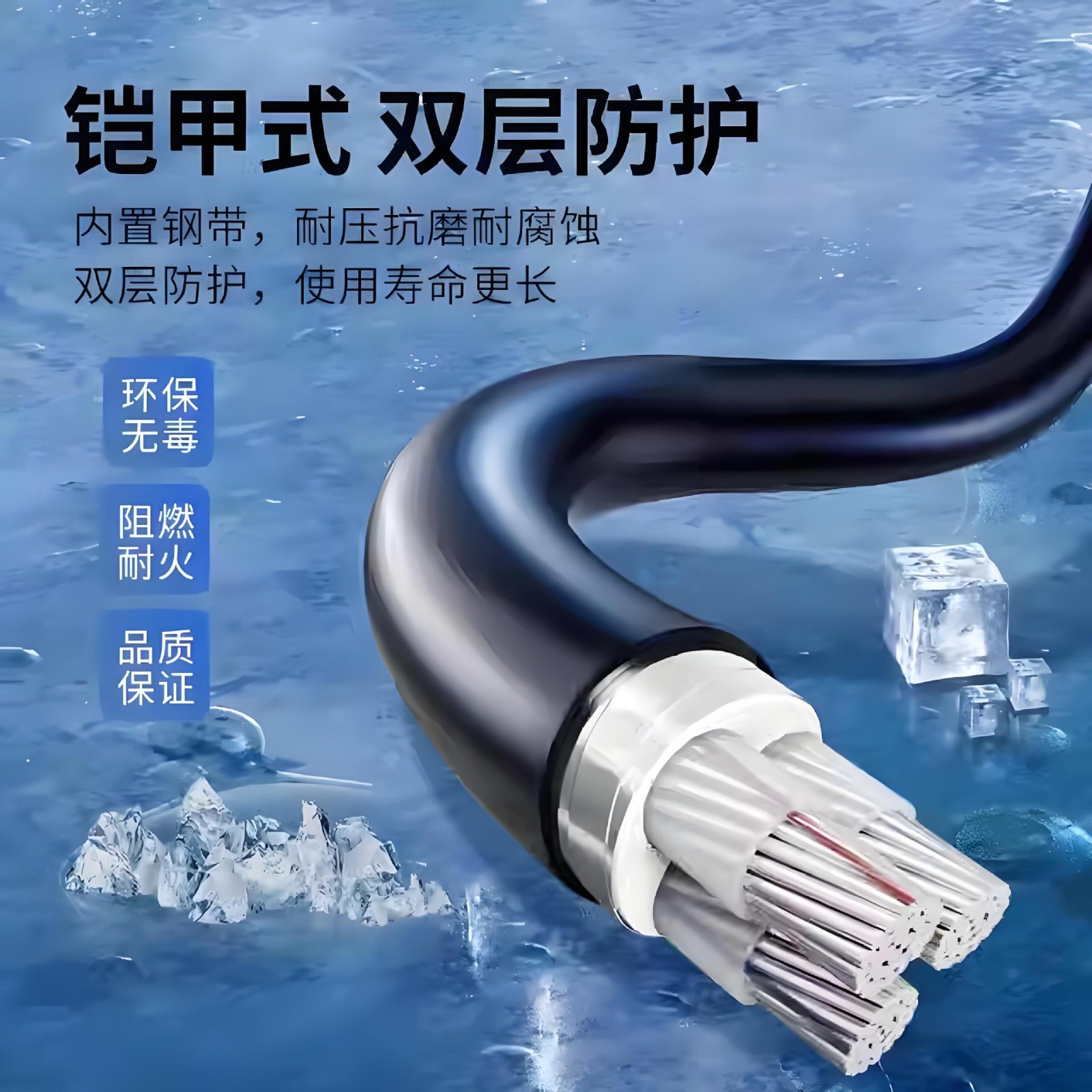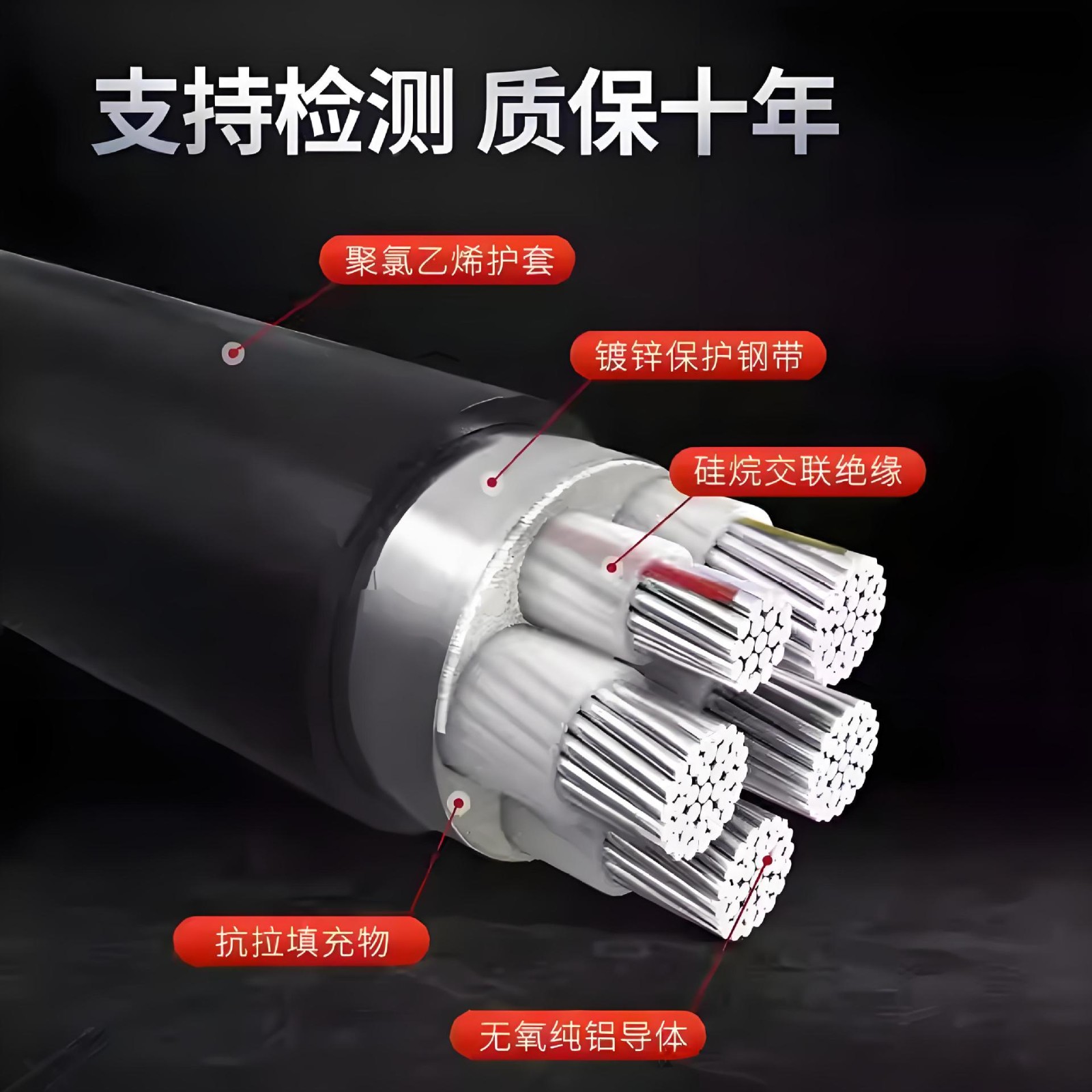 国标纯铝芯YJLV/VLV22架空1/2/3/4/5芯10平方地埋铠装电力电缆线 2米