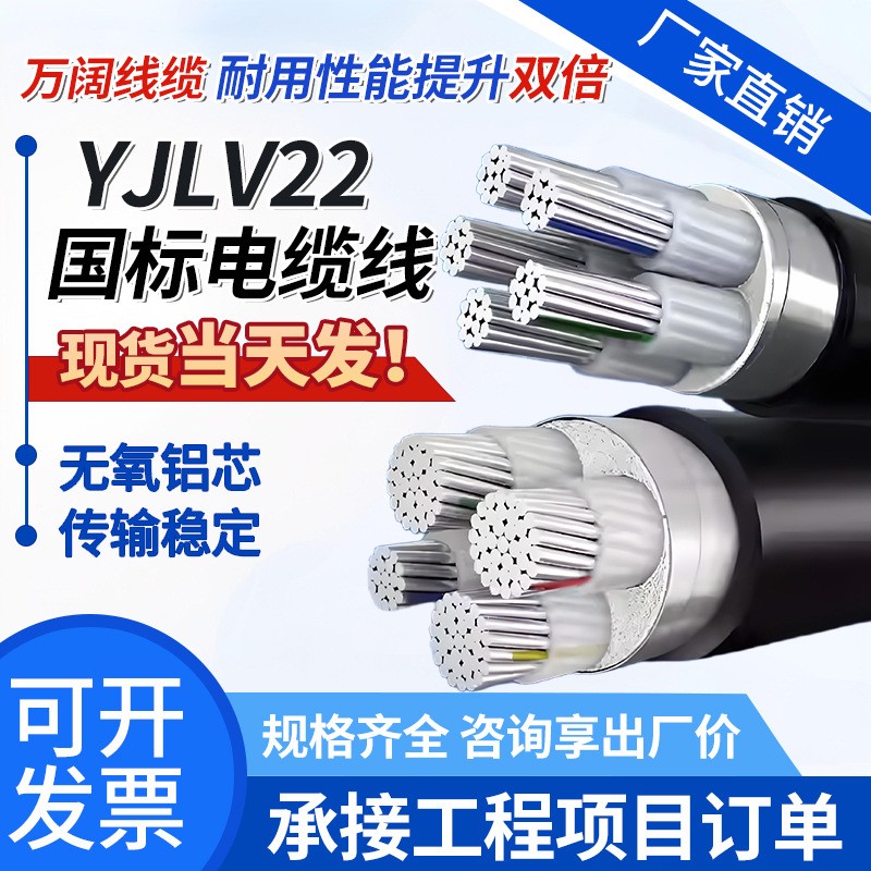 国标纯铝芯YJLV/VLV22架空1/2/3/4/5芯10平方地埋铠装电力电缆线