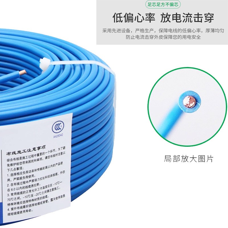 BV单芯铜电线1.5/2.5/4/6平方家装布电线单股硬线无氧铜芯绝缘线 100米