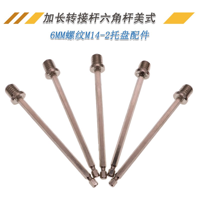 加长六角连接杆电钻转接杆电动工具配件螺纹M14打磨盘抛光盘配件