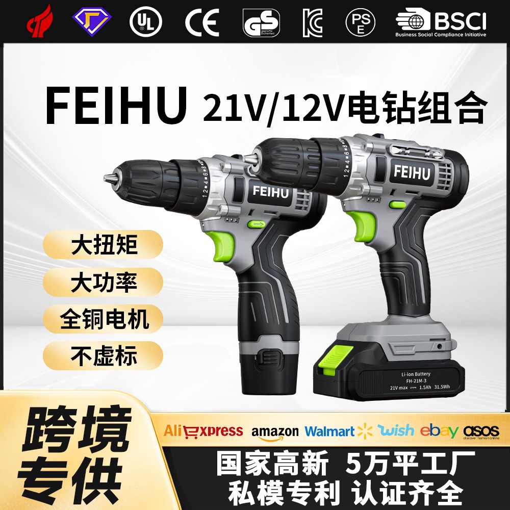 飞虎21V充电式手电钻家用打孔大功率多功能锂电钻电动工 具CE认证