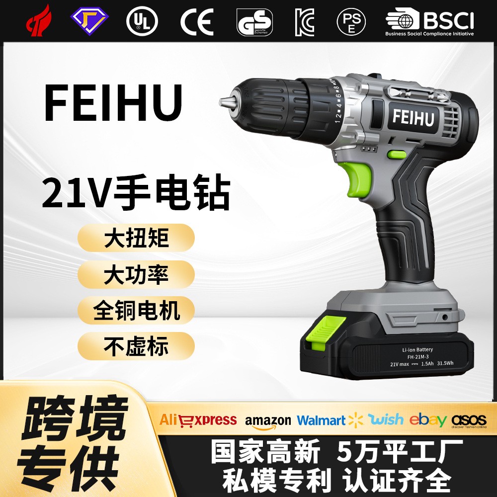飞虎21V充电式手电钻家用打孔大功率多功能锂电钻电动工 具CE认证