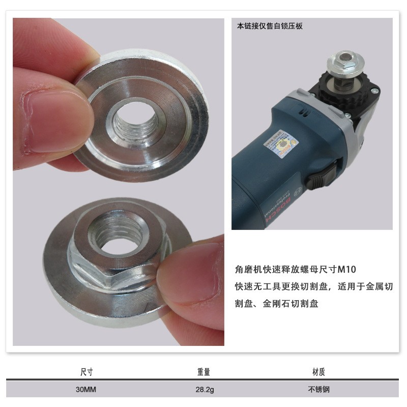 厂家货源角磨机压板 M10六角螺母抛光机配件 不锈钢镀锌自锁夹板
