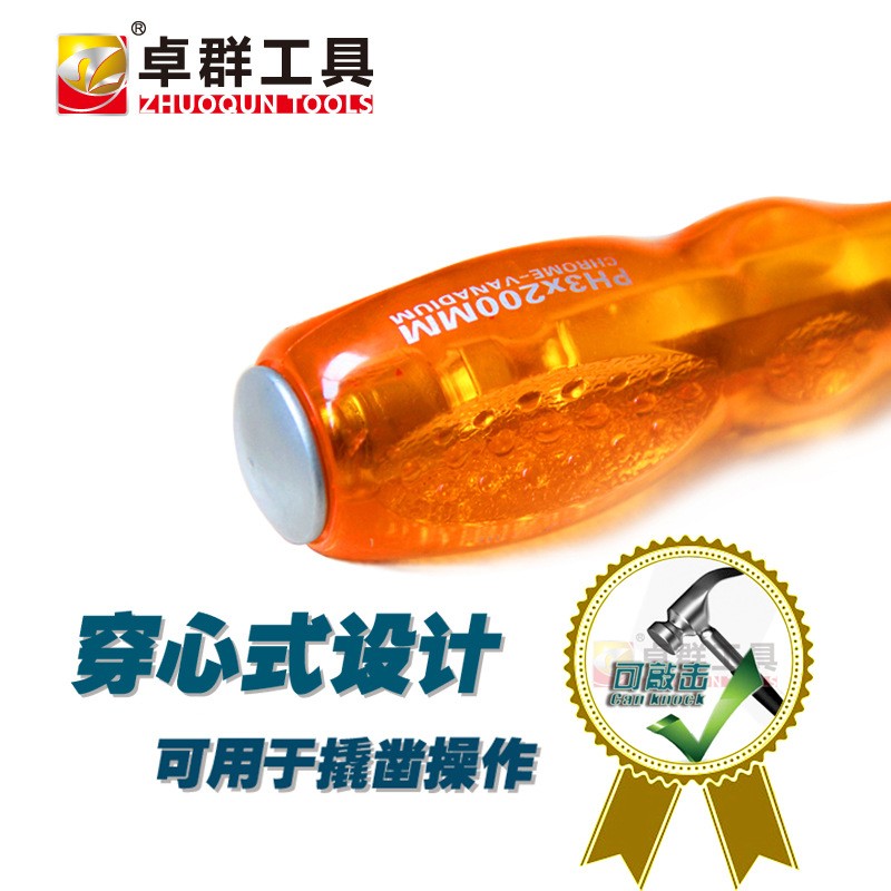 穿心可敲击螺丝刀十字一字塑柄铬钒钢带磁家用机械维修工具起子