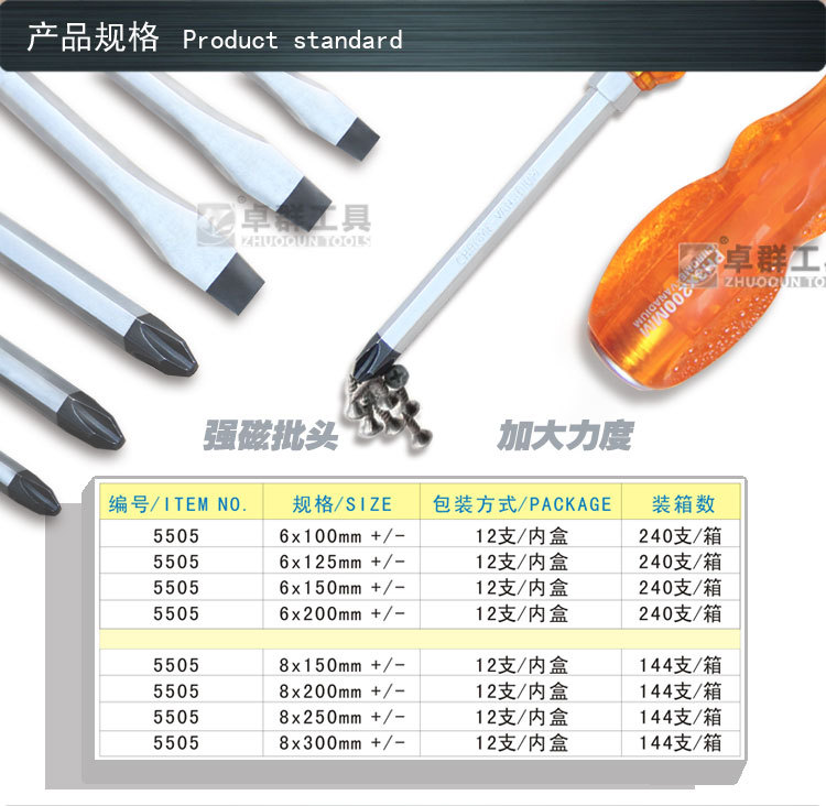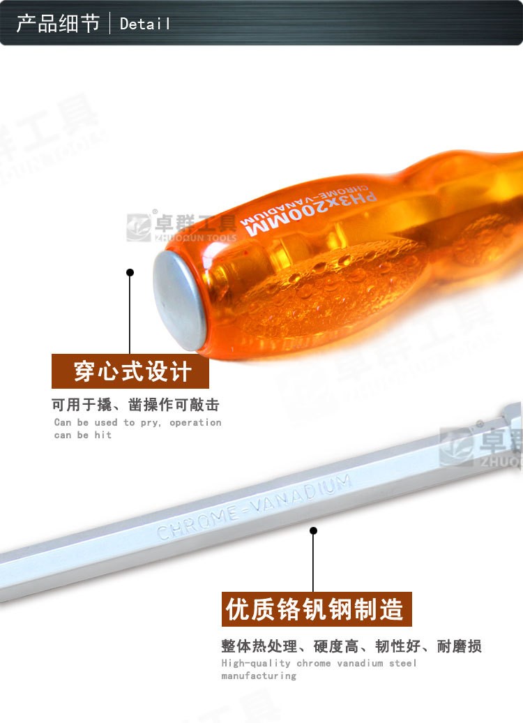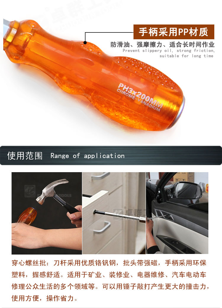 强磁高硬度冲击穿心可敲击螺丝刀十字一字工业机械维修工具起子