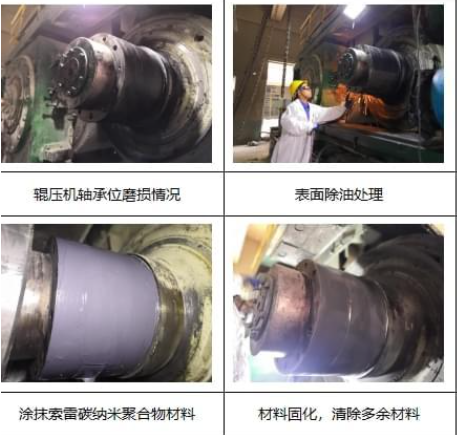 全文概括:某水泥企业辊压机在运行过程中出现了轴承位磨损问题,磨损深度约1mm,轴径600mm,1:12锥,来电咨询索雷碳纳米聚合物材料技术能否修复辊压机轴承位磨损问题。